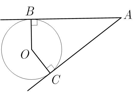 Радиусы и касательные образуют четырехугольник, в котором два угла — прямые. Следовательно, сумма оставшихся двух углов также равна