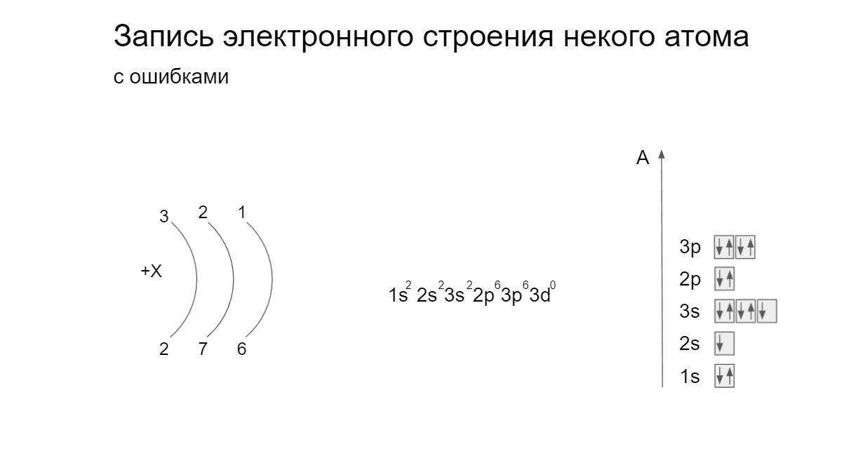Задание, исправить запись атома с ошибками. Я вроде как исправил, но учитель сказал, что неверно. А как надо было сделать?
