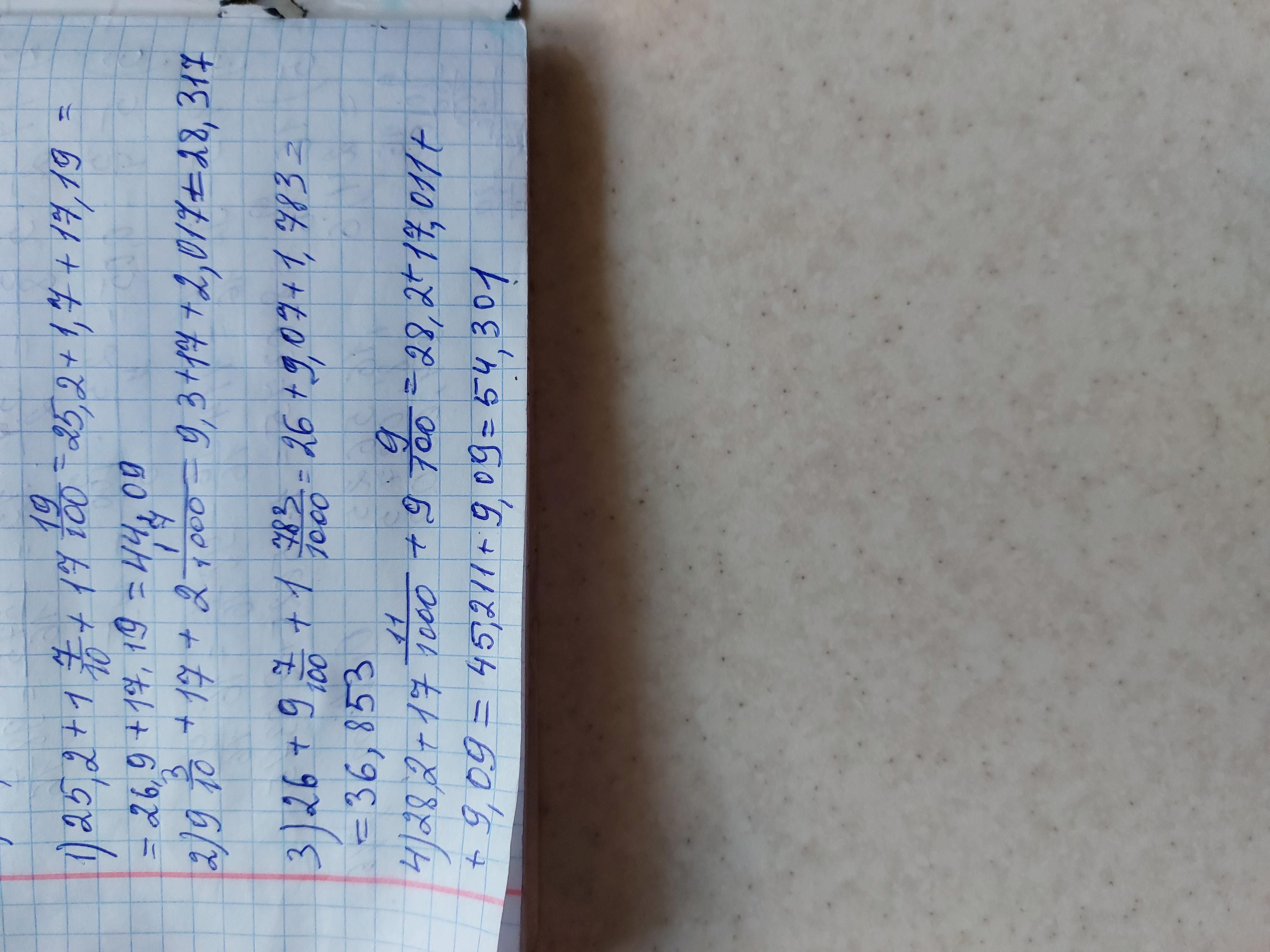 номер 900 Приведите слагаемые в десятичной дроби и Вычислите сумму .1) 25,2+1 7/10+17 19/100