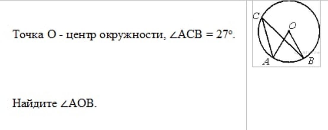 дуга AB=2∠ACB=∠AOB=2×27°=54°