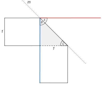 Паперову стрічку з шириною 1 см перегнули під деяким кутом до її краю. У результаті утворився двошаровий трикутник (затушований). Знайдіть найменшу можливу площу такого трикутника.
