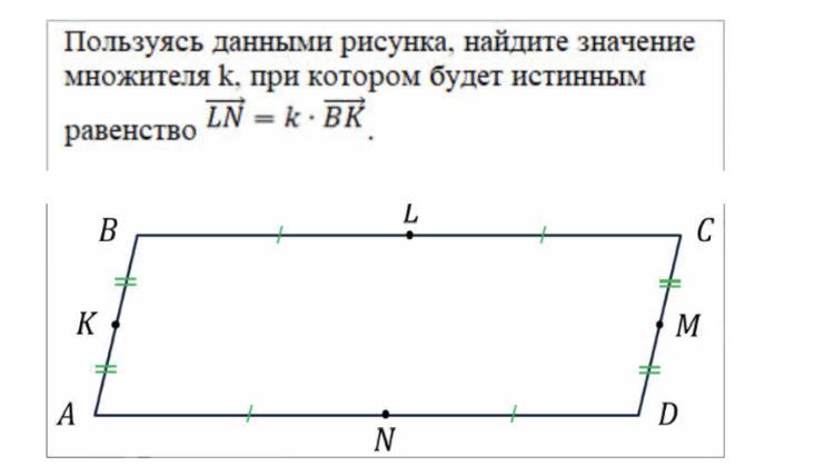 2 ) LN = k * BK ; вектор LN = BA = 2 * BK , тому k = 2 .