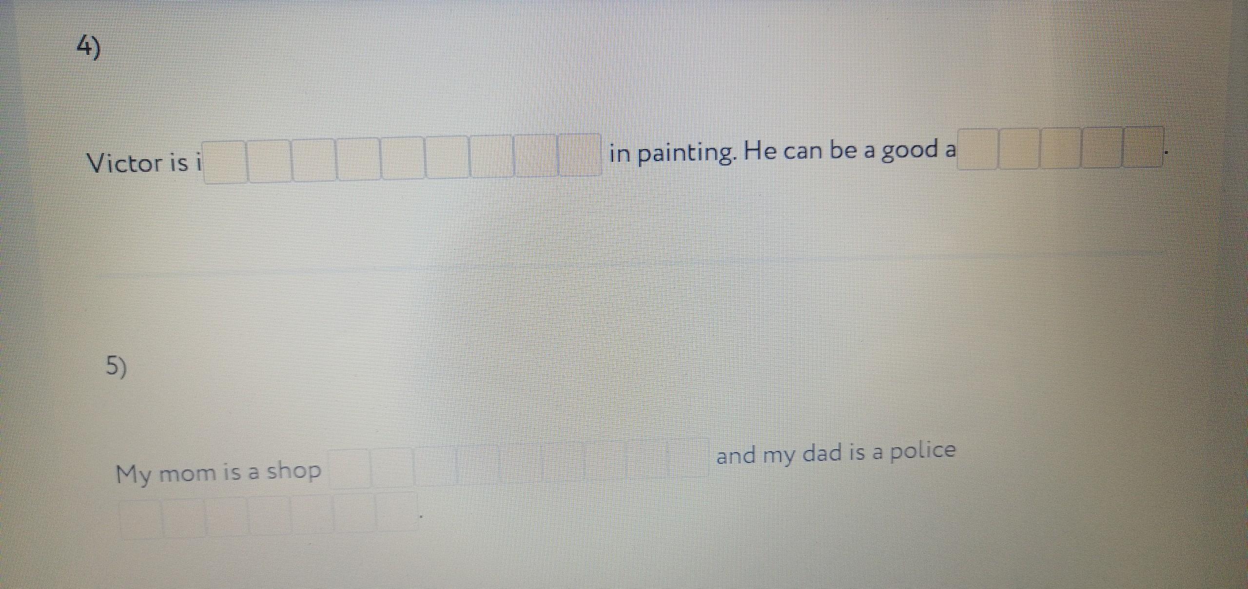 1) Sam likes animals. He wants to live on f__3 буквы __ and work as v_2буквы__