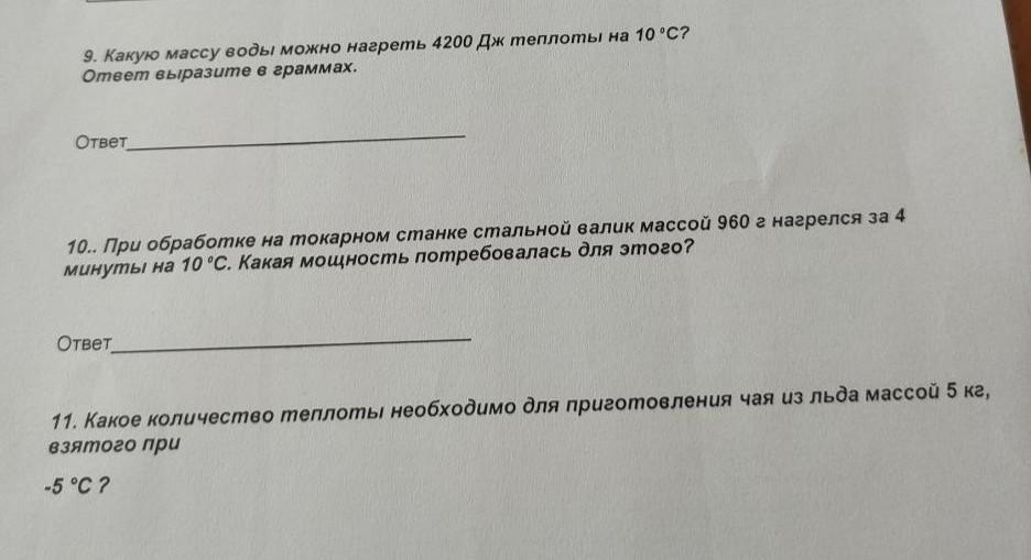 10) Решить нельзя, непонятно, о какой мощности идёт речь, если речь о станке, то нужно кпд станка, как нагревательного прибора, нереальная, придуманная и плохо сформулированная задача, мне кажется...