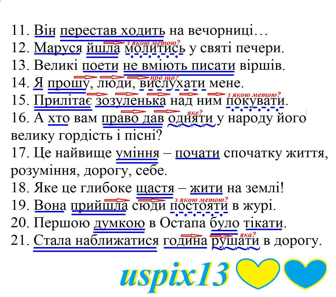 Допоможіть, будь ласка, виконати вправу: в реченнях підкреслити підмет та присудок, та інфінітив, якщо він виступає другорядним членом (обставина, означення, додаток). Дякую.