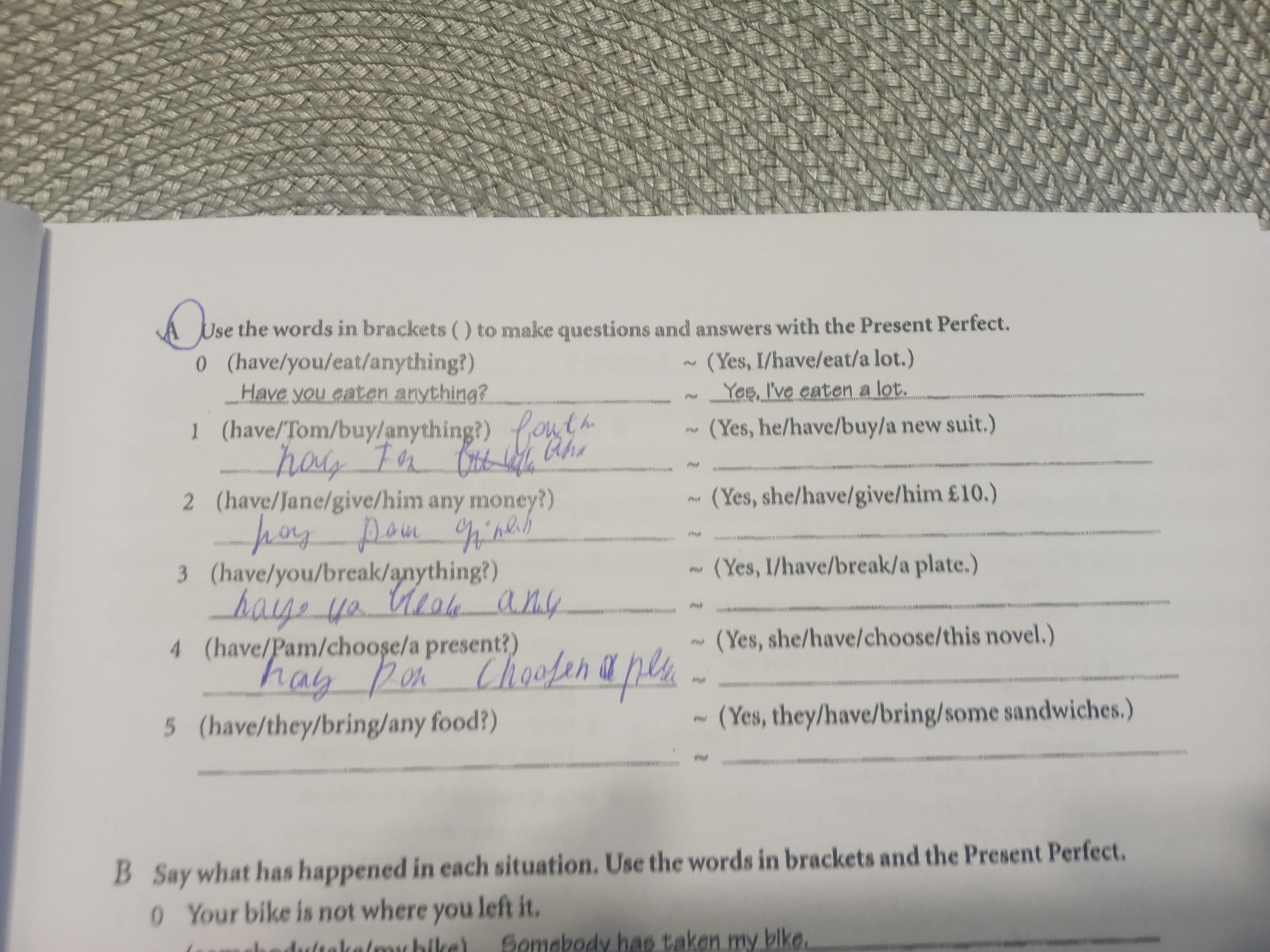 1. Has Tom bought anything? Yes, he has bought a new suit.