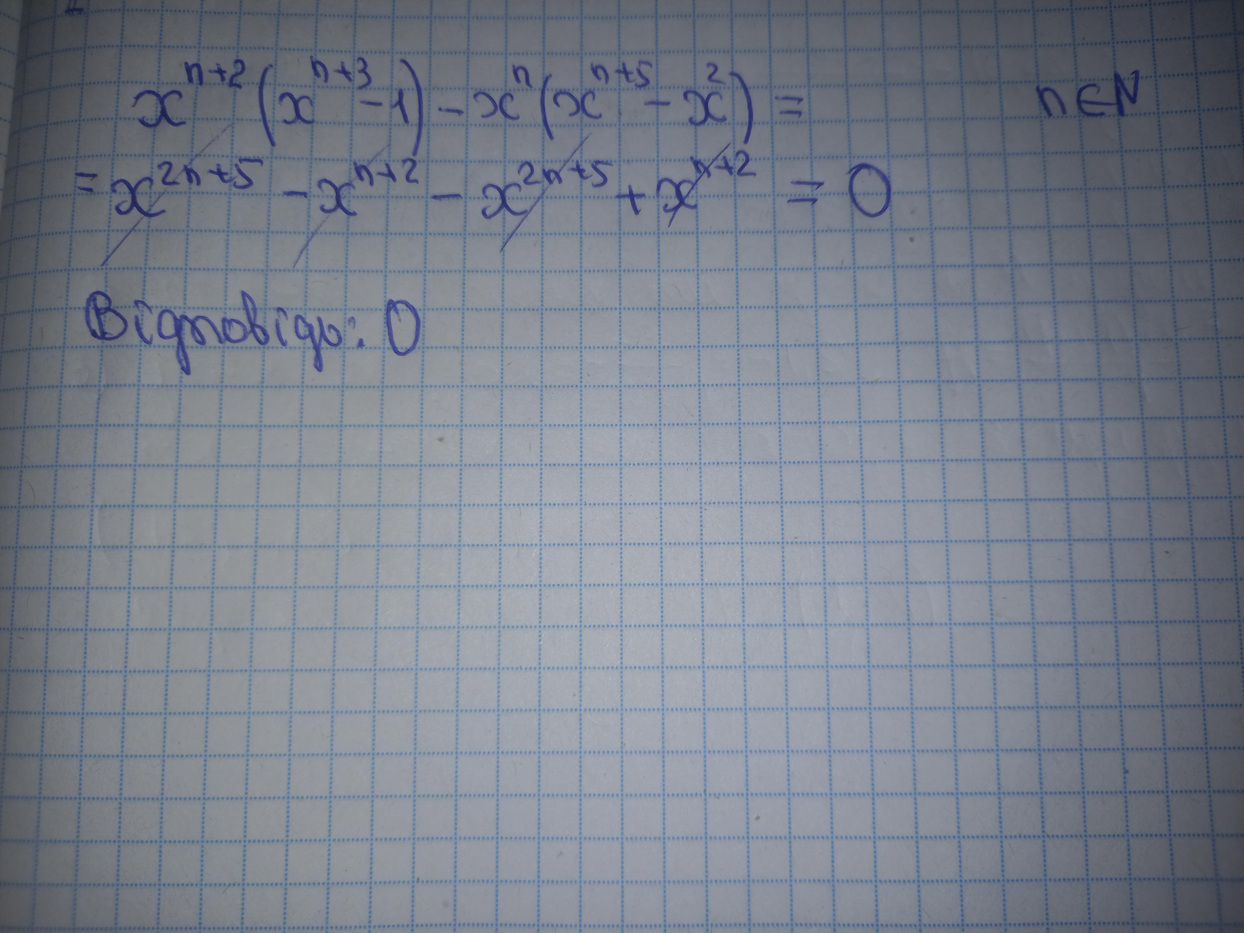 спростіть вираз x n+2 (x n+3 − 1) − x n(x n+5 − x 2 ), где n – натуральное число. а x n в 1 б 0 г x n+1 д x n−1