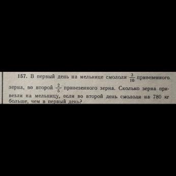 157. В первый день на мельнице смололи 3/10 привезенного зерна, во второй 2/5 привезенного зерна. Сколько зерна при 2 5 везли на мельницу, если во второй день смололи на 780 кг больше, чем в первый день?