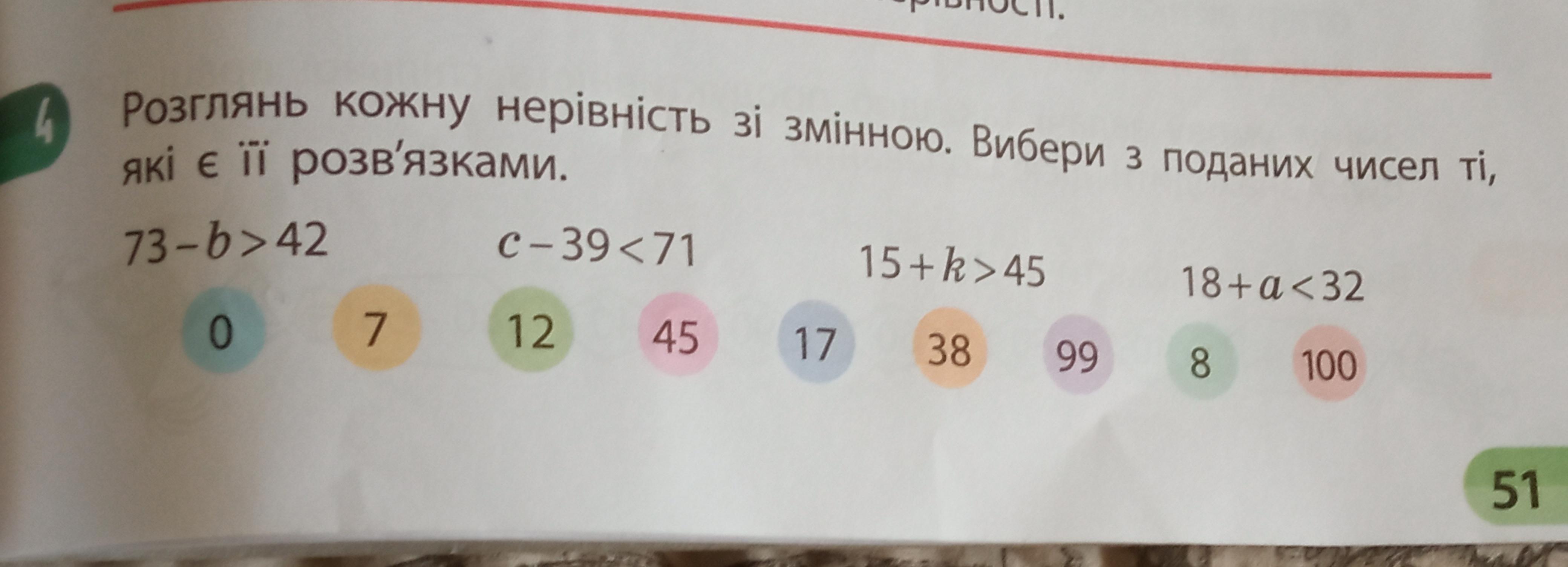 15 + к > 45 к = ( 45; 38; 99; 100)