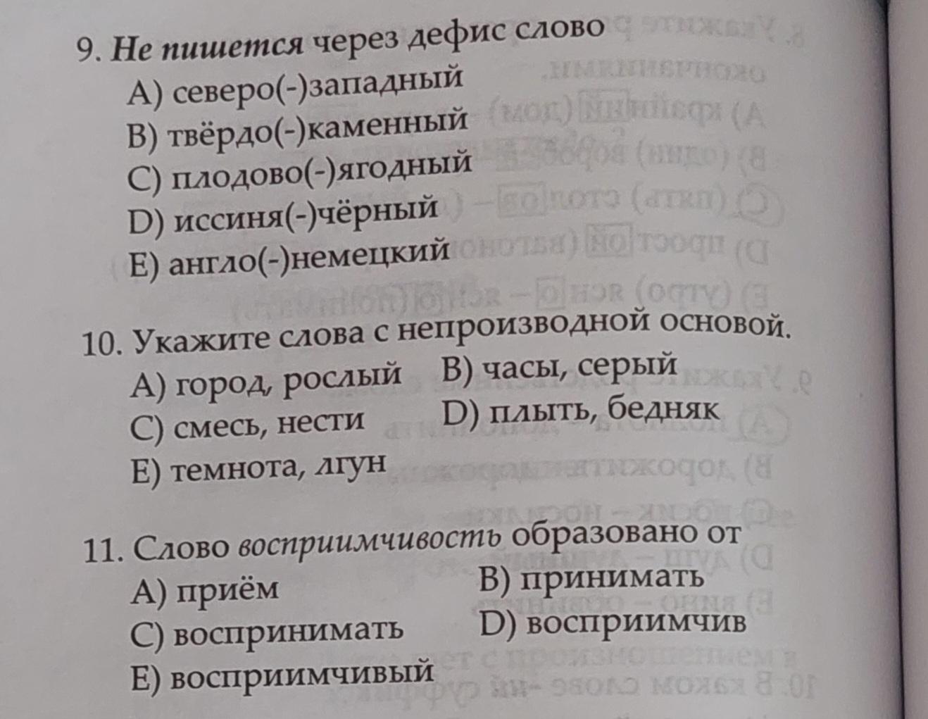 10. Укажите слова с непроизводной основой