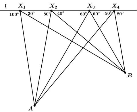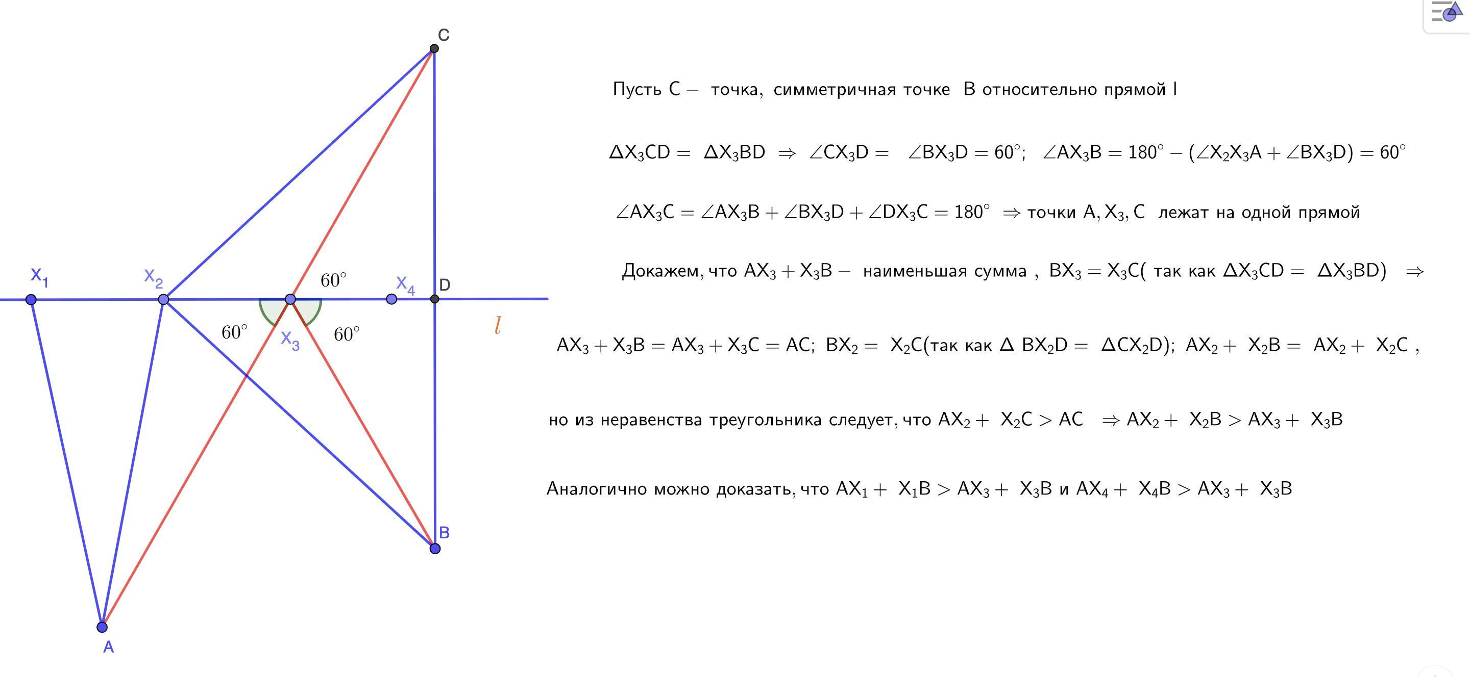 На прямой L выбраны точки X1, X2, X3, X4. Выберите наименьшую сумму. С аналитическим обоснованием и чертежом при необходимости.