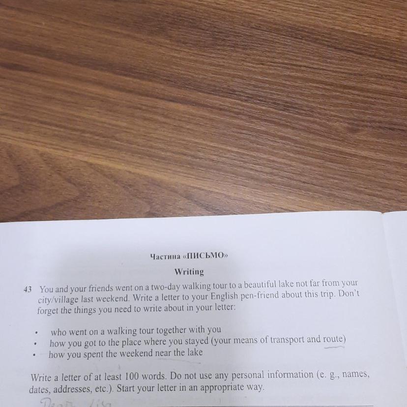 Hello, my friend. Recently, our class decided to go on a camping trip to a lake that was not far from our town. On the weekend, early in the morning, we gathered near the school and boarded a bus that took us out of town. The bus was comfortable, and the driver played funny songs that lifted the mood. Arriving at the lake, we started looking for a picnic spot. Then we laid out the food and started playing ball, some of the guys were swimming. Then we started eating. During our meal, we talked about various topics. It was fun and cool. I think my classmates and I will repeat this again soon.