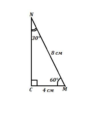ΔCMN - прямоугольный , ∠С=90° , MN=8 см , ∠М=60° .
