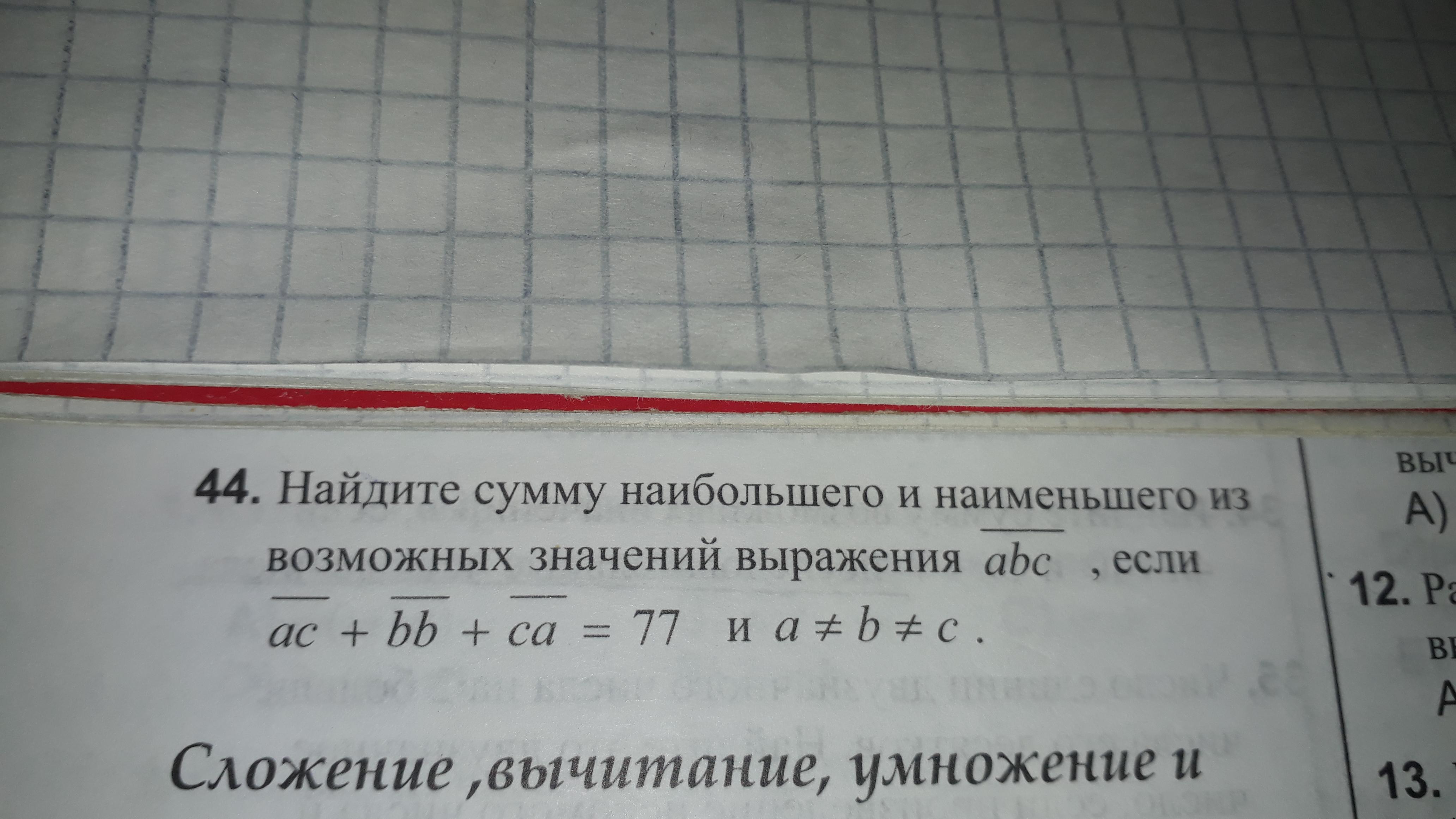 Ну и здесь уже не трудно догадаться, что наименьшее значение будет, при наименьших числах (не повторяющихся и отличных от нуля) : а=1, b=2, c=4