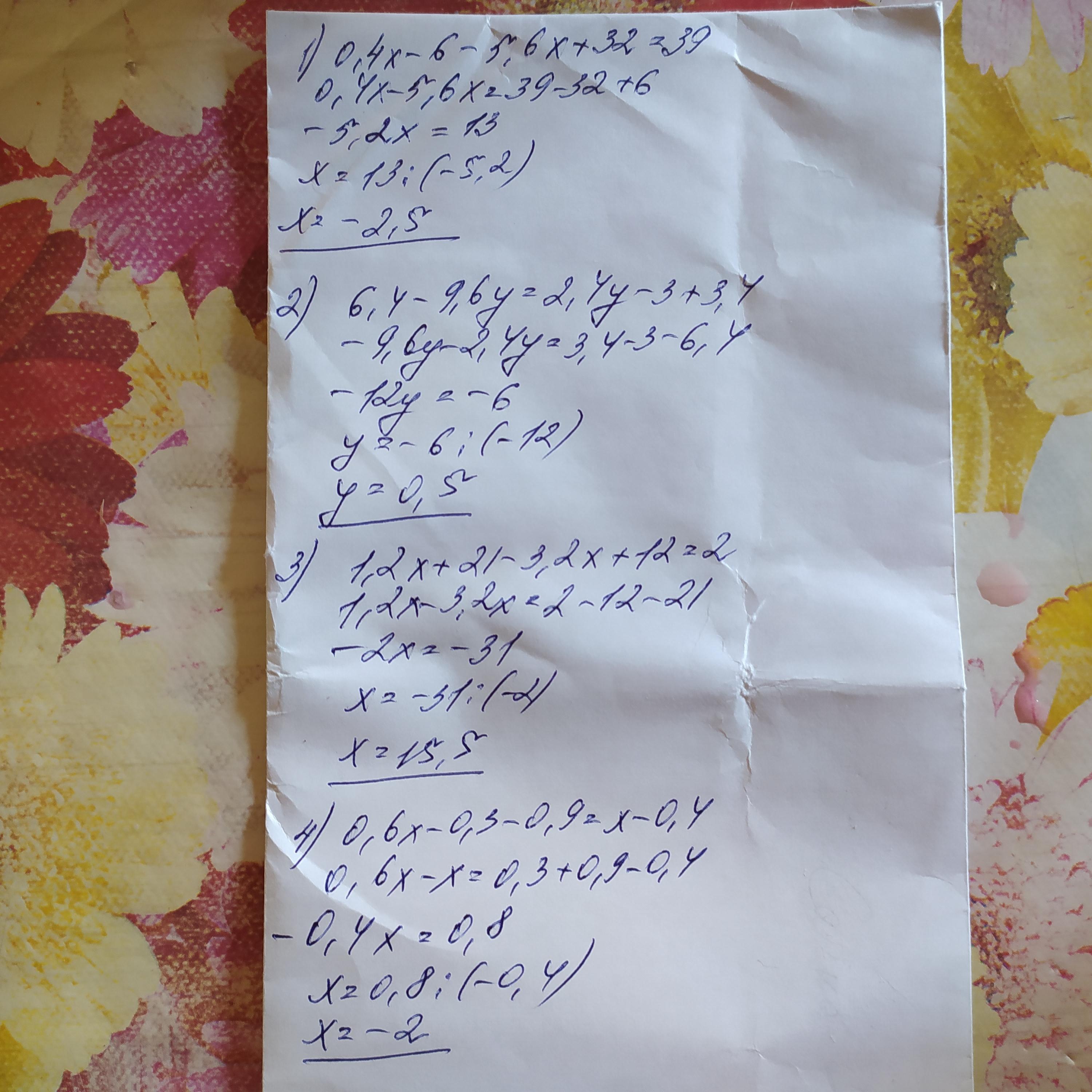4) 0,3(2x - 1) - 0,9 0,2(5x - 2).помогите пожалуйста вот фото