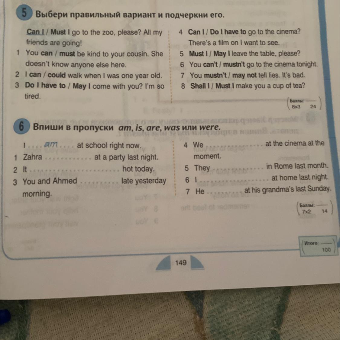 6 You can't/mustn't go to the cinema tor