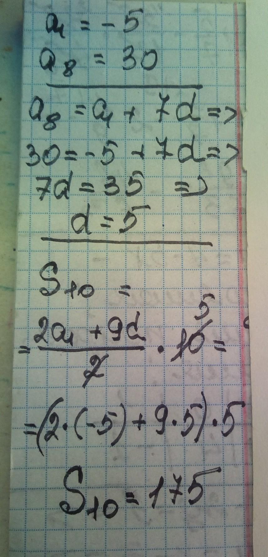a8-a1/ 8-1= 30-(-5)/7=35/7=5 -d