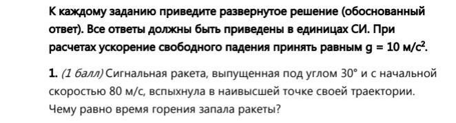 Если время горения запала=времени подъема до высшей точки, то Vyo=Vo*sin30°=80*(1/2)=40 м/с. Vy=Voy-gt. В верхней точке скорость Vy=0. 0=40-10t. t=4 c. Это ответ.