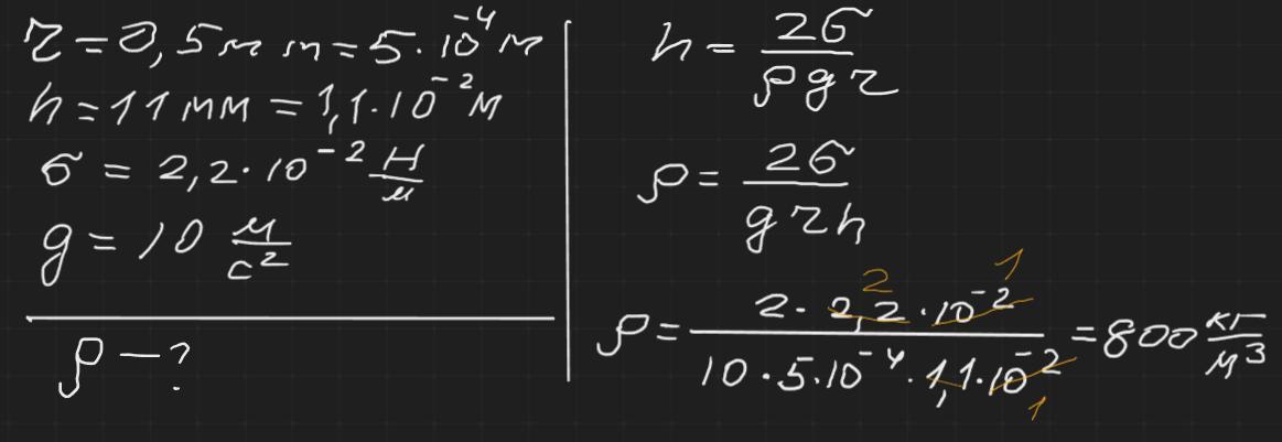 У капілярній трубці, радіус якої 0.5мм, рідина піднялась на висоту 11мм. Визначте густину цієї