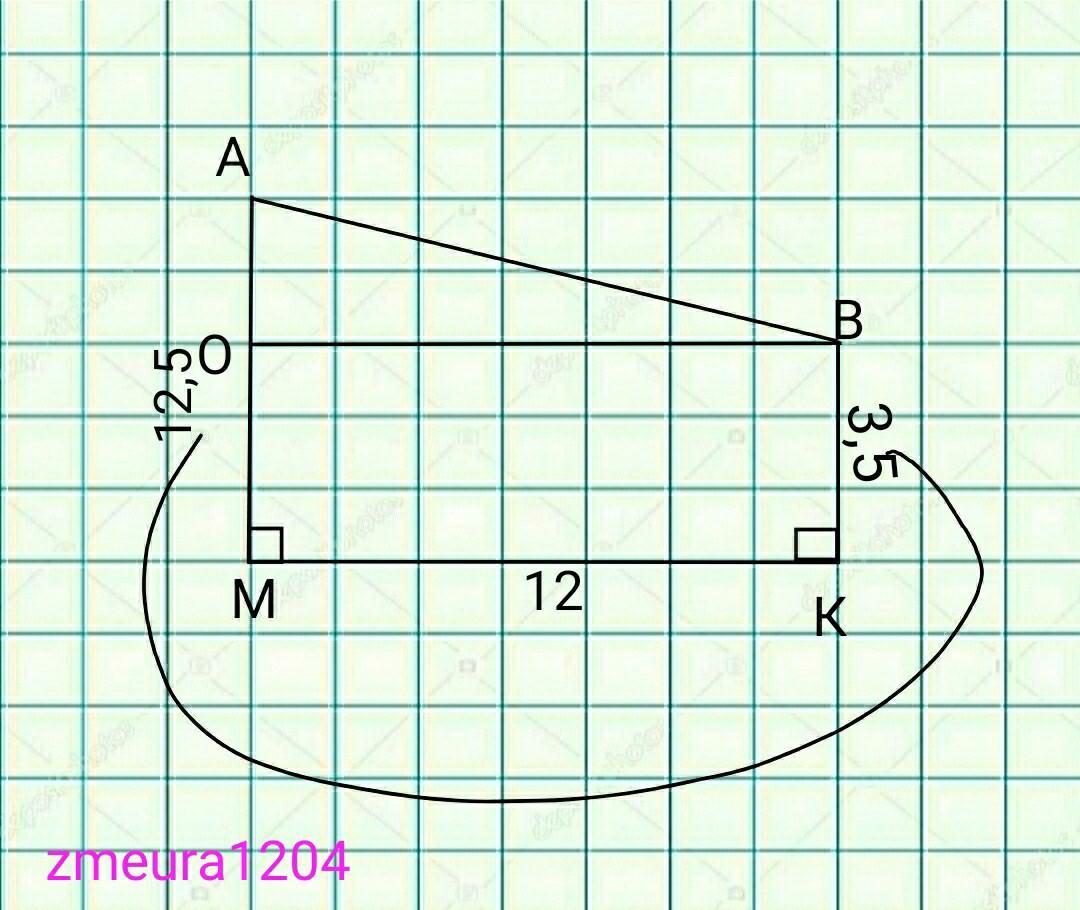 АО=АМ-ОМ=12,5-3,5=9см