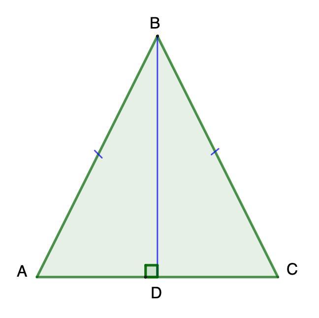 - В равнобедренном треугольнике высота, проведенная к основанию, является медианой.