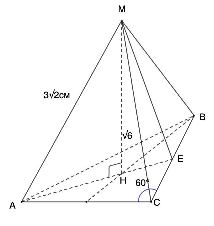 MA = 3√2 см; МН = √6 см - высота;