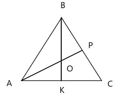 Медіани в рівносторонньому трикутнику є також висотою та бісектрисою ⇒ ВК -бісектриса ∠ АВС, АР - бісектриса ∠ВАС