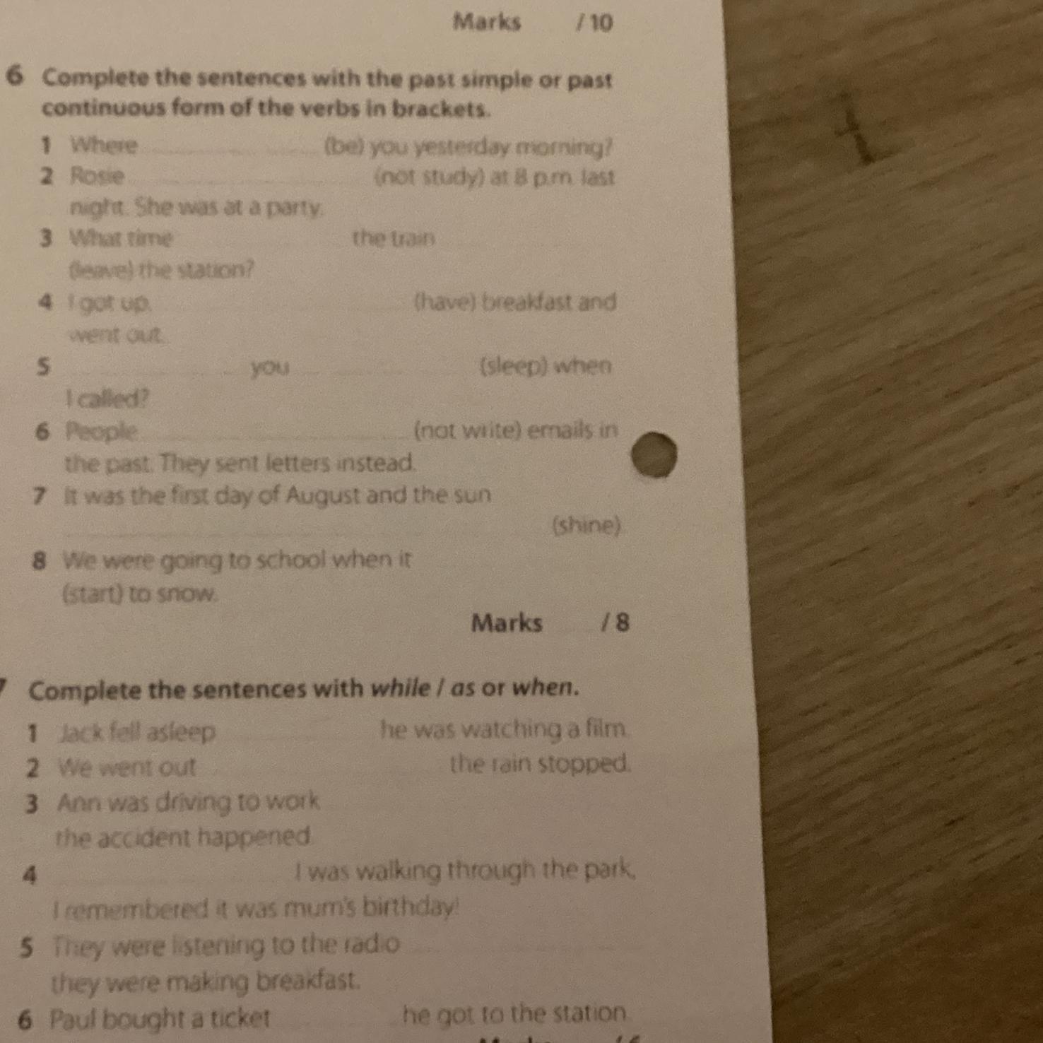 Сделайте первый и второй пожалуйста срочно!!!! Complete the sentences with the past simple or past continuous form of the verb in brackets