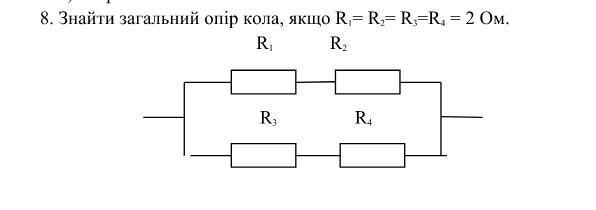 R=(R1+R2)*(R3+R4)/(R1+R2+R2=3+R4)=(2+2)*(2+2)/(2+2+2+2)=2 Ом