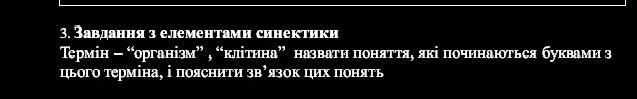 Завдання з елементами синектики: Термін – “організм” , “клітина” назвати поняття, які починаються буквами з цього терміна, і пояснити зв’язок цих понять