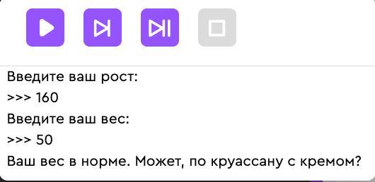 print("Ваш вес в норме. Может, по круассану с кремом?")
