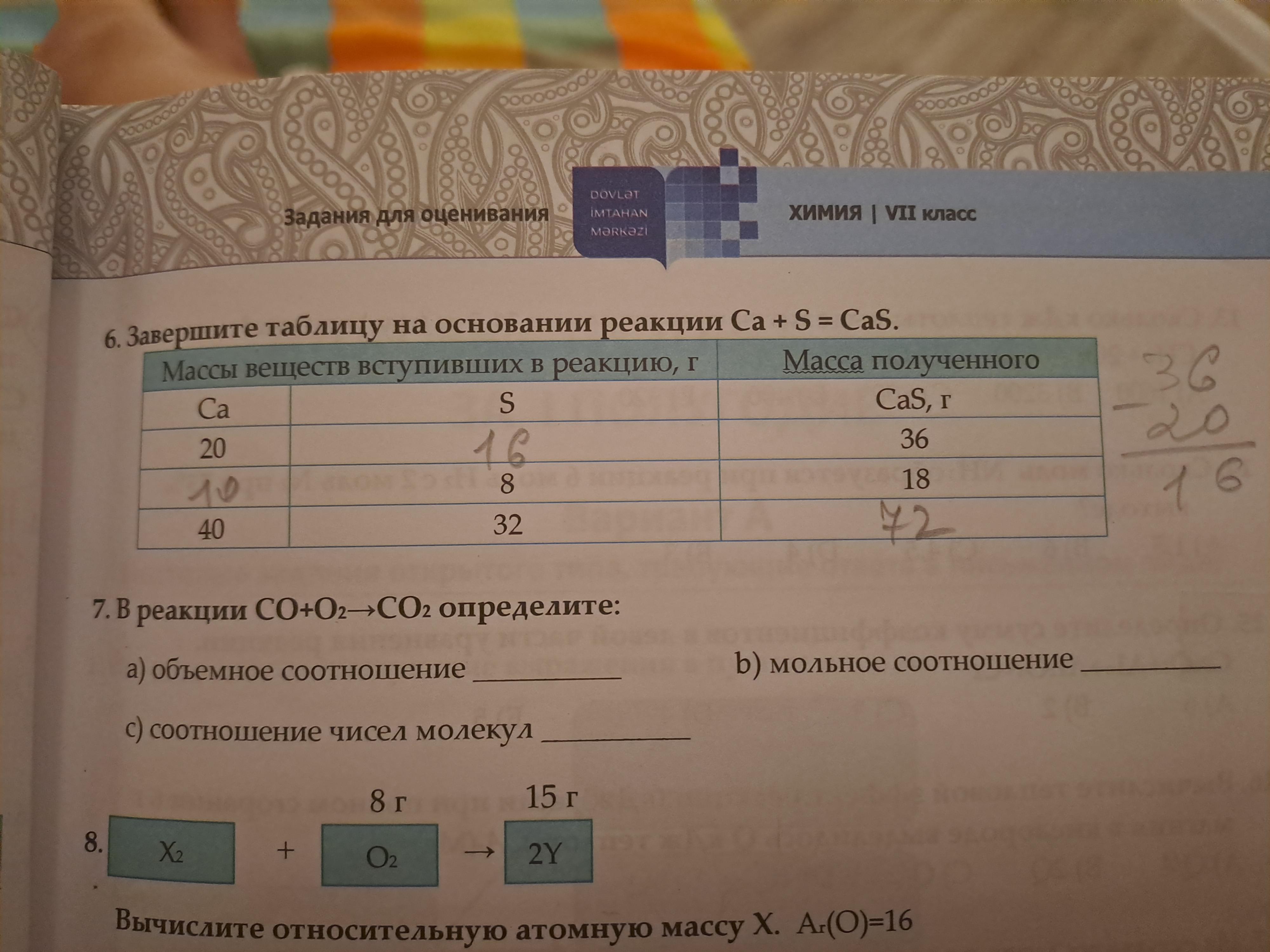 тут уже смотрим на количество каждого атома до и после стрелки. до стрелки у нас будет 4 (1 углерод и 3 кислорода), а после стрелочки — 3 (1 углерод и 2 кислорода). получается, соотношение тут будет 4:3.