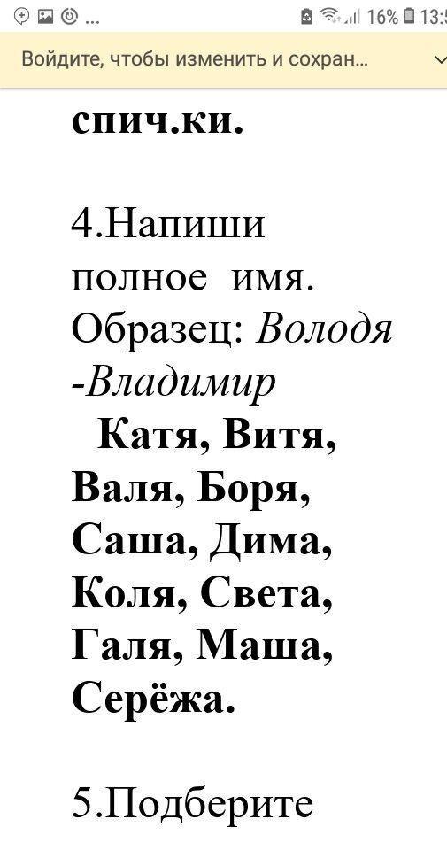 Катя: Екатерина,Витя: Виктор,Валя: Валентина, Боря: Борис,Саша: Александр,Дима: Дмитрий,Коля: Николай, Света: Светлана, Галя: Галина,Маша: Мария, Серёжа:Сергей
