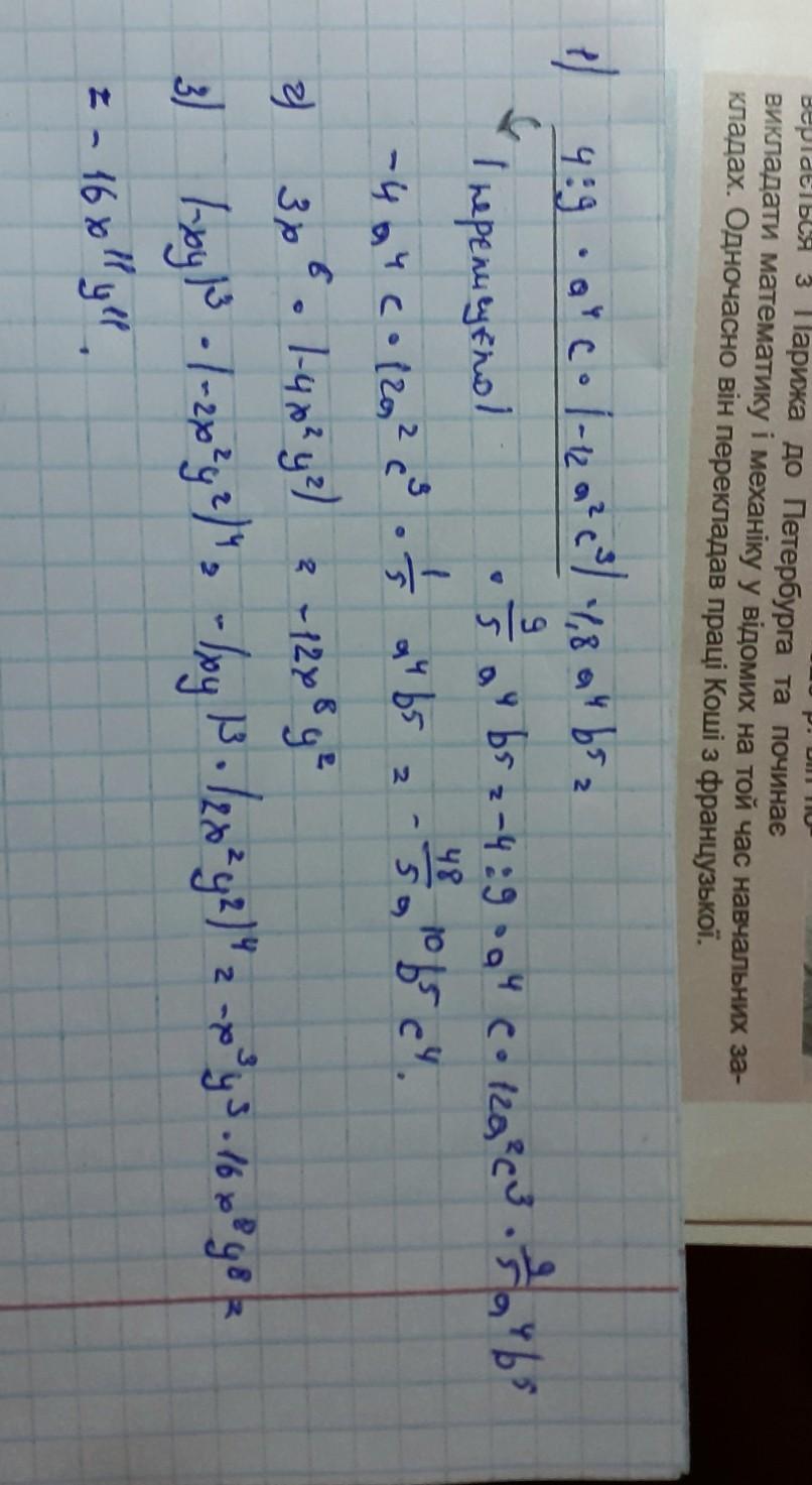 1) 4/9 a⁴c × (-12a²c³) × 1,8a⁴b⁵