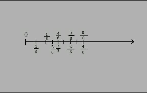 а) 1/6 ; 1/2 ; 5/6 ; 2/3 ; 1/12 ; 5/12.