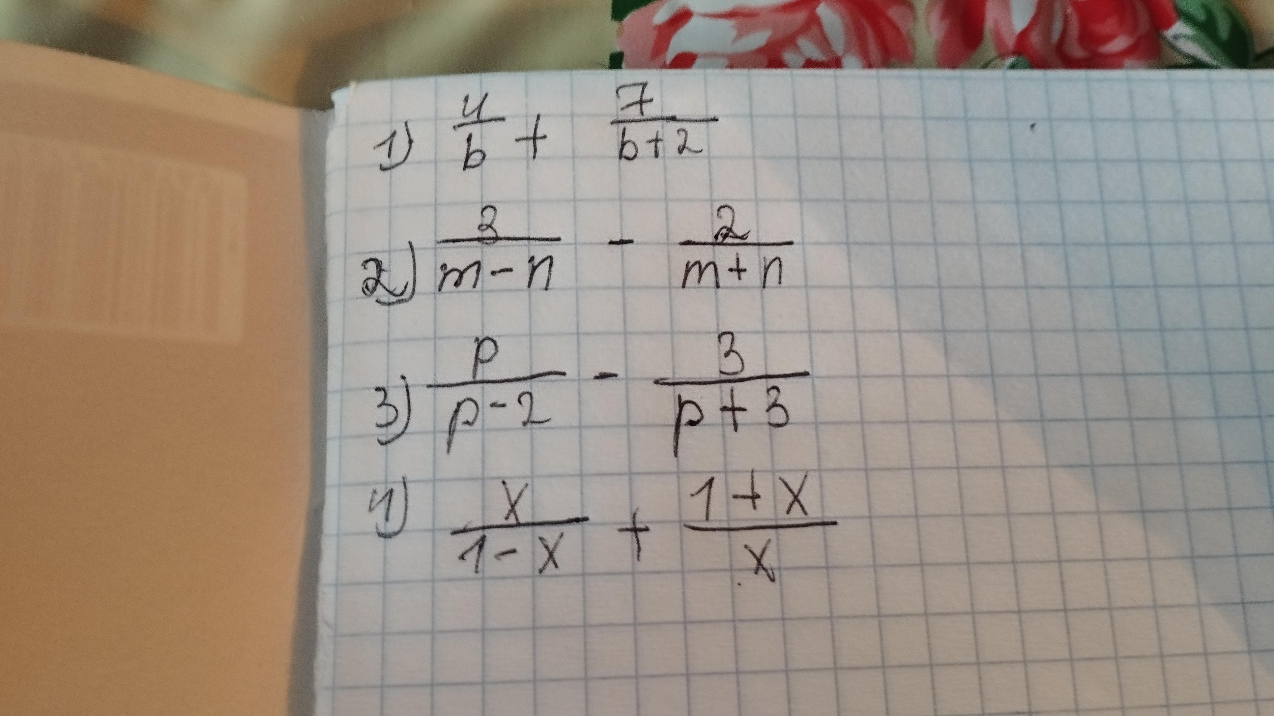 1) 4/b +7/(b+2)=(4b+8+7b)/(b(b+2))=(11b+8)/(b(b+2))
