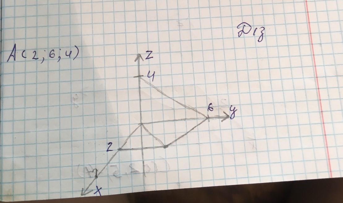 Побудуйте у прямокутній системі координат точки А(2; 6; 4),