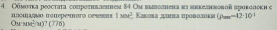 Обмотка реостата сопротивлением 84 Омоновой проволоки с площадью поперечного сечения 1 мм ? Какова на проволоки ( р - 42×10^-1 OM мм / м ) ? ( 776 )