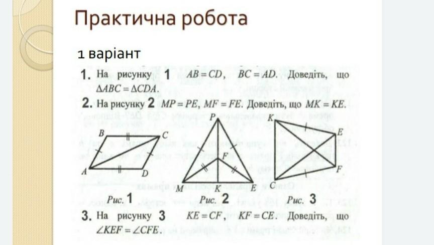 ∆ МРF=∆EPF по 3 сторонам, значит соответствующие элементы равны, следовательно, ∠МРК=∠ЕРК,значит РК - биссектриса.