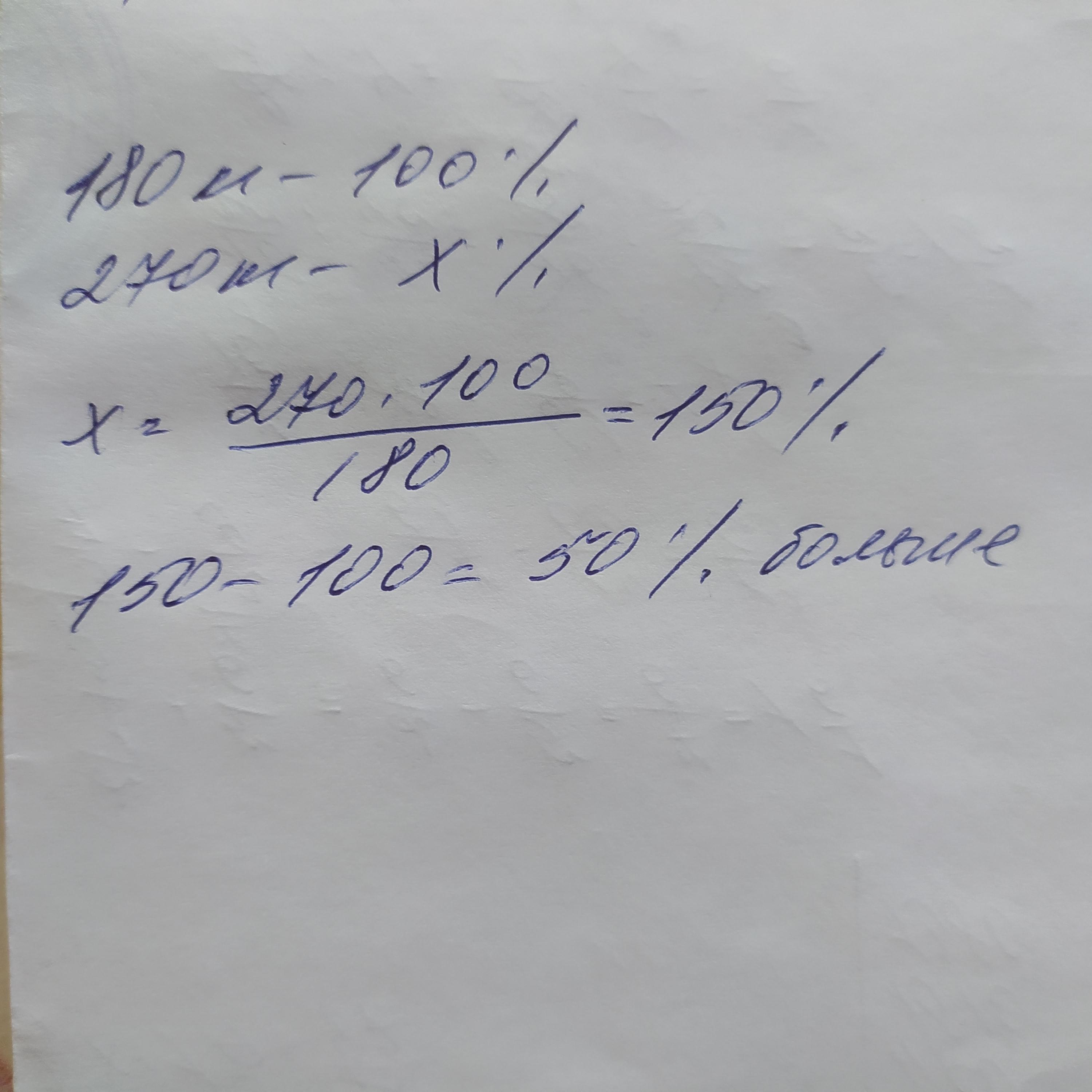 Вмагазин за один деньпрадали 180 кг памидоров, а за дргугой -270 кг. На сколько працентов больше магазин прадал памидоров за второй день?