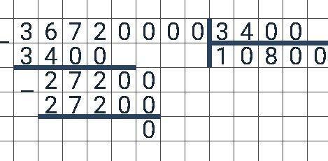 36720000:3400 = 367200 : 34 = 10800 .