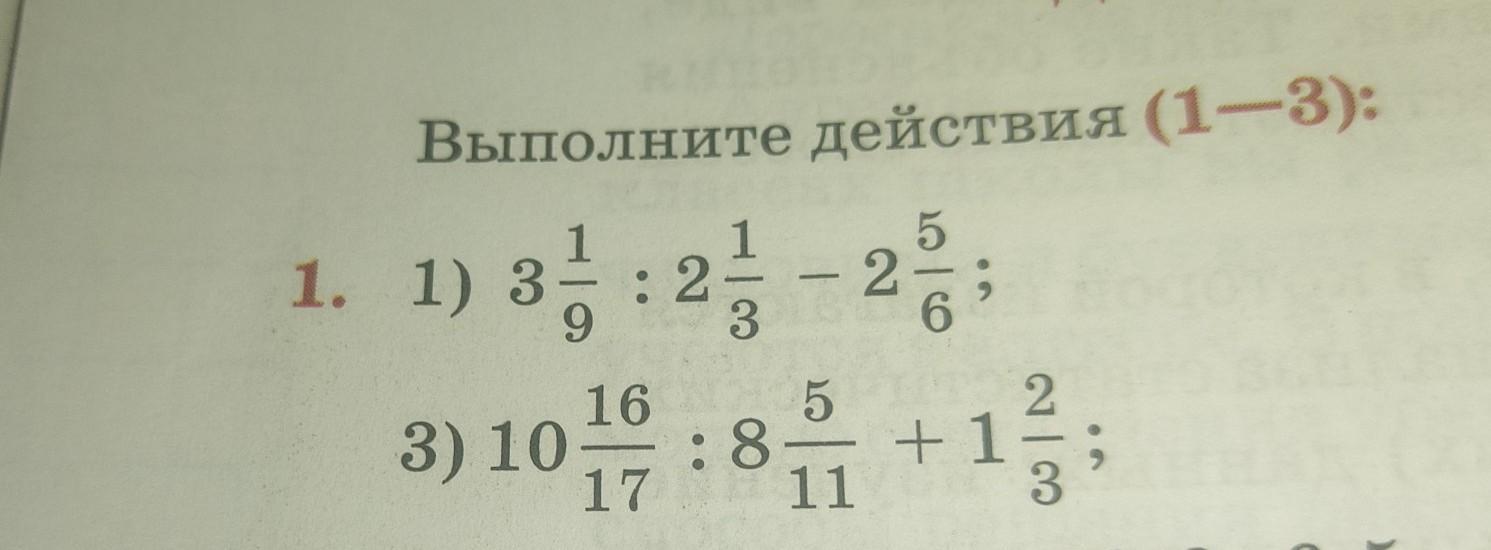 1) 3 1/9 : 2 1/3 - 2 5/6 = 28/9 : 7/3 - 2 5/6=4/3-17/6=-3/2=-1.5;