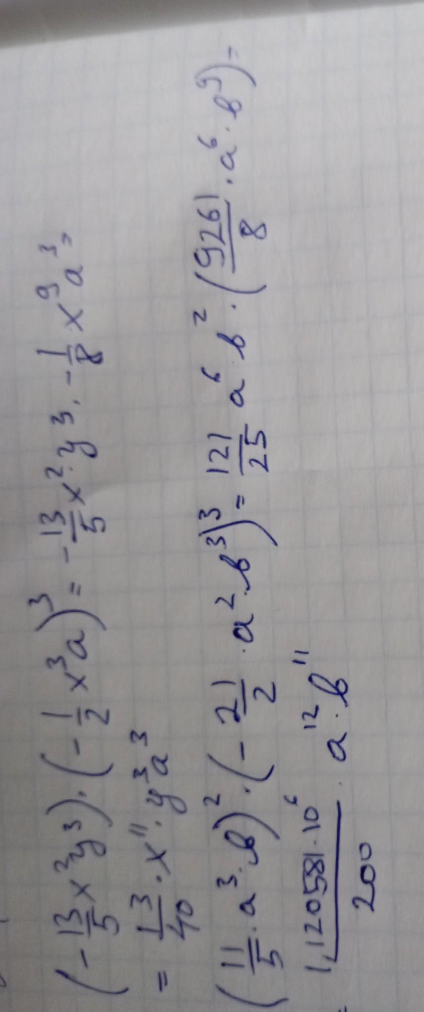 (-13/5 *х²*у³)*(-1/8 * х⁹ * а³=13/40 *х¹¹*у³*а³