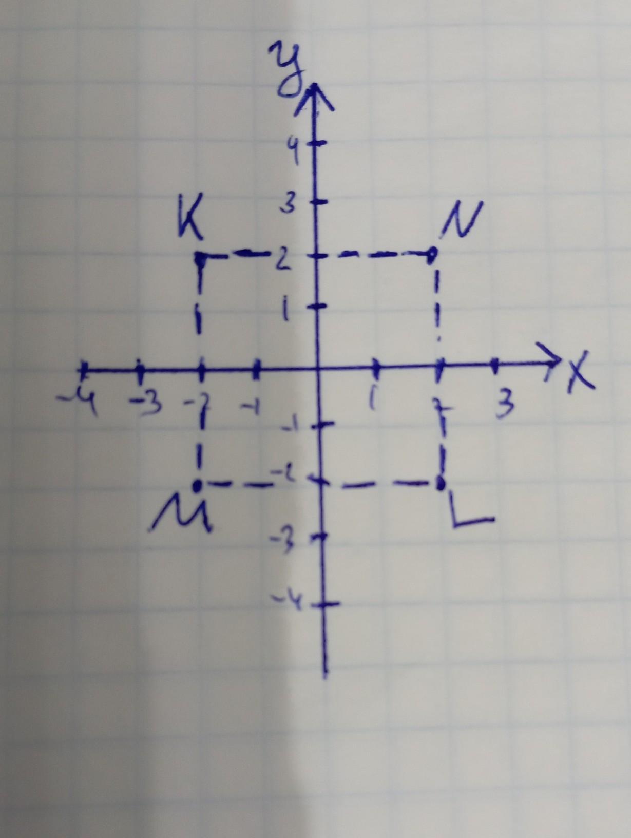 Задайте прямокутну декартову систему координат на площині та побудуйте в ній точки: K(- 2; 2), L(2; - 2), M (- 2; - 2), N(2; 2) .