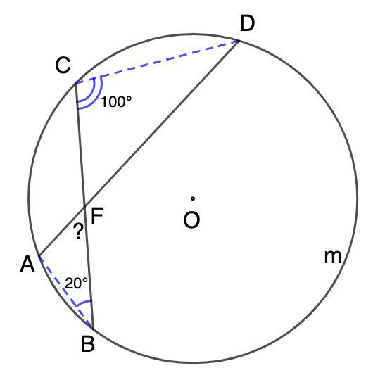 Хорди AD і BC перетинаються в точці F. ∠ABC = 20 градусів, ∠ВCD = 100 градусів. Знайти градусну міру ∠AFВ.