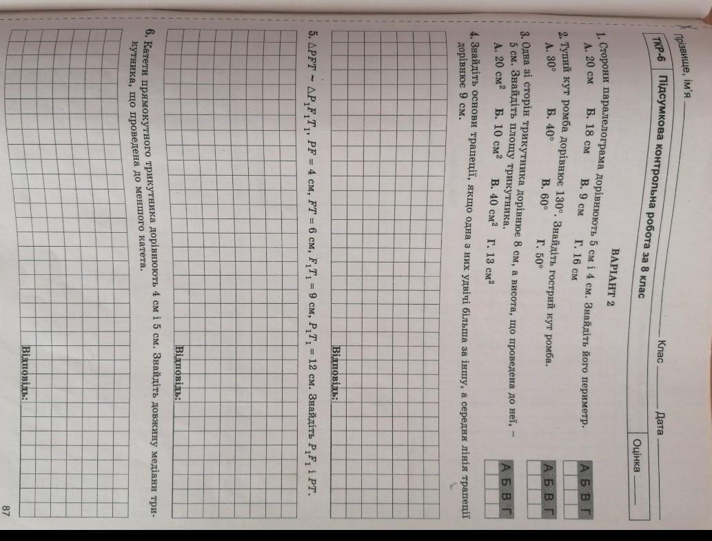 1. Сторони паралелограма дорівнюють 5 см і 4 см. Знайдіть його периметр. Б. 18 см В. 9 см A. 20 см Г. 16 см