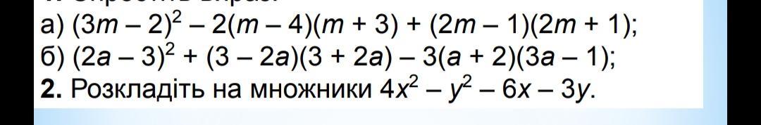 1. а) (3m - 2)² - 2(m - 4)(m + 3) + (2m-1)(2m + 1) = 11m² -10m + 27