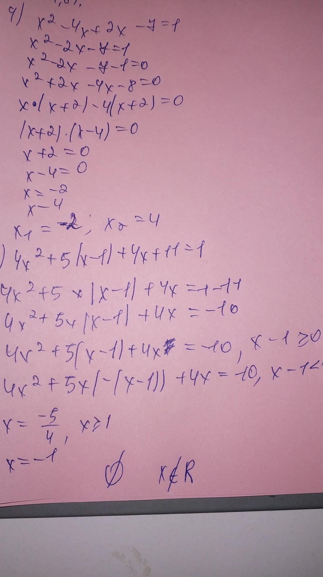 6) 4x² + 5 |x-1| + 4x + 11 = 1.