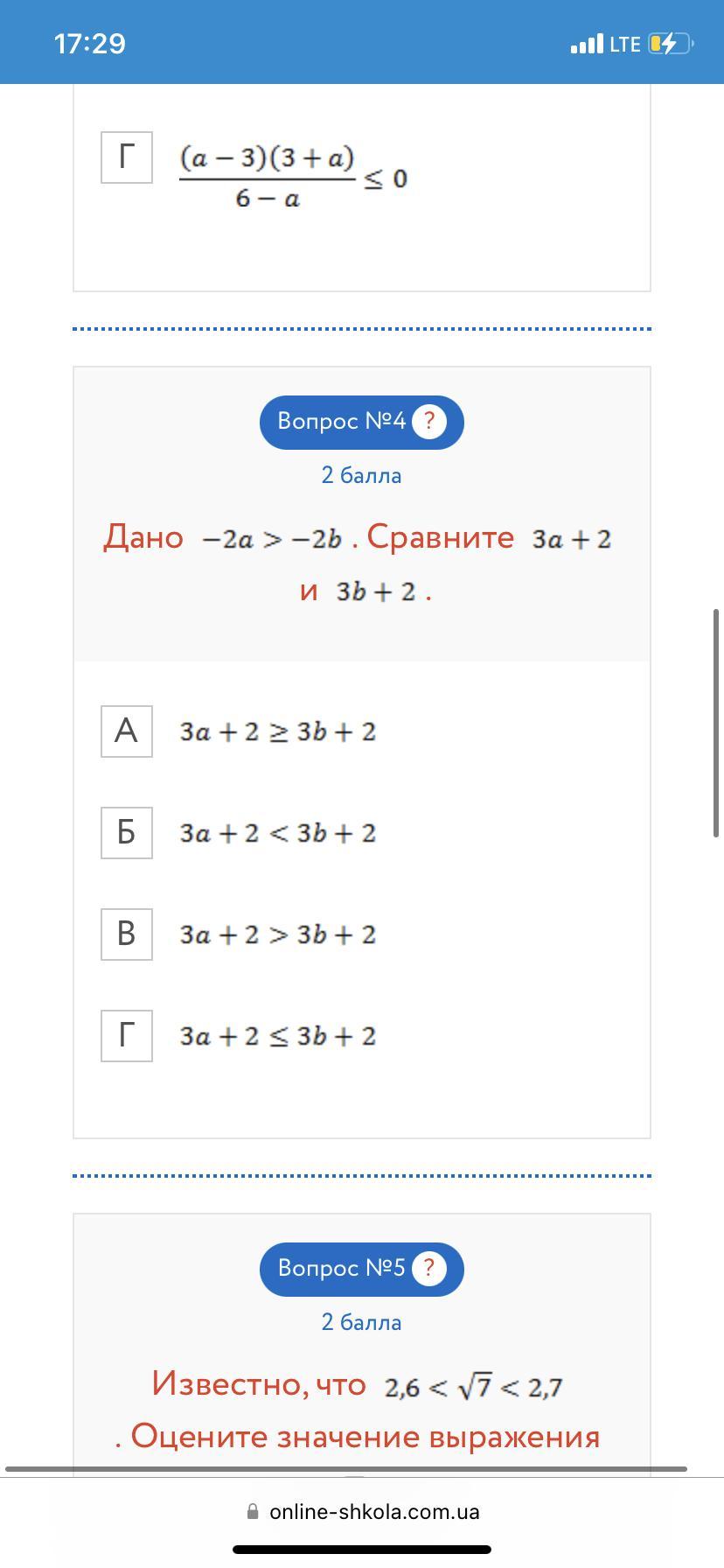 1. Дано -2a > -2b. Сравните 3а + 2 и 3b + 2.