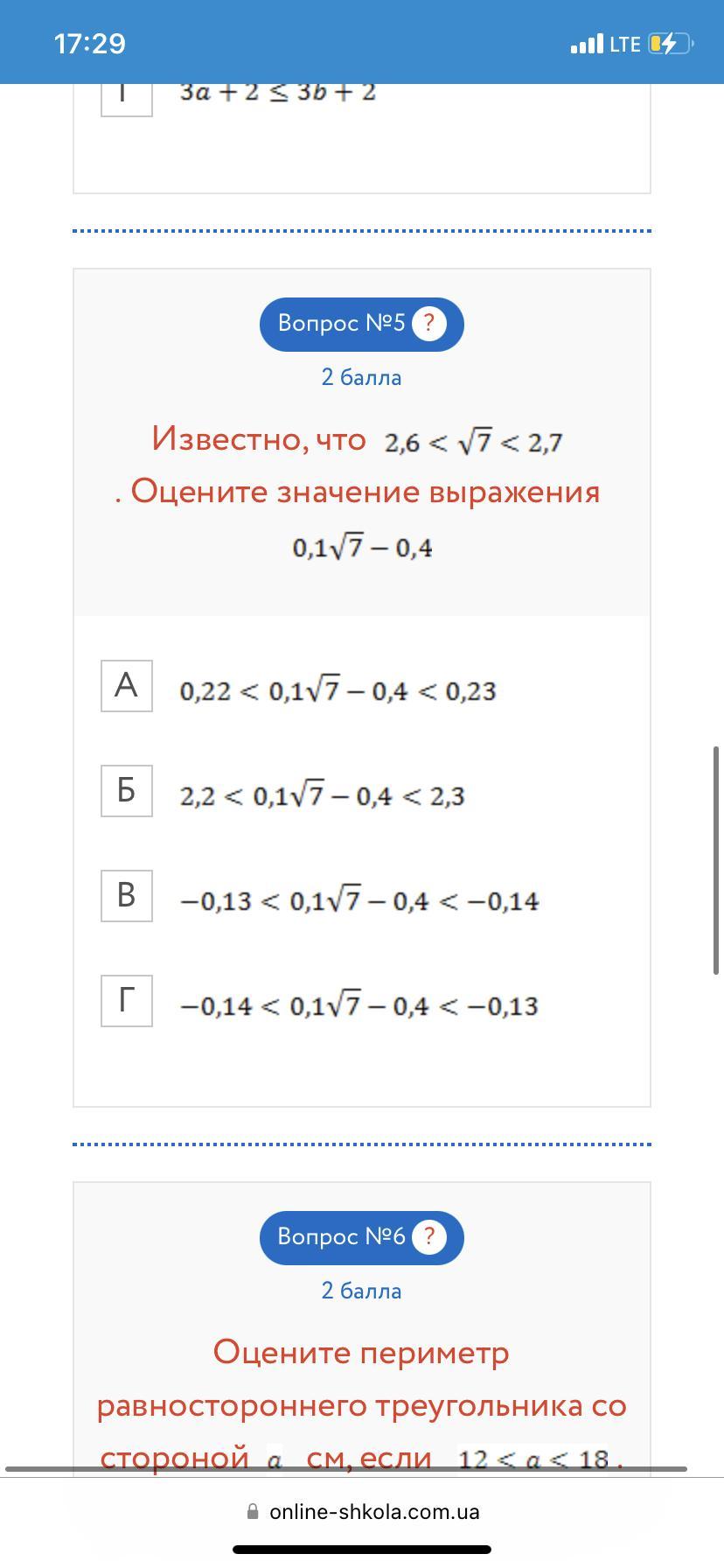 2. Ответ: Г. -0,14 < 0,1√7 - 0,4< -0,13